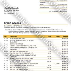 Need an editable Australian bank statement template that looks authentic and matches your exact needs? Whether you’re replacing lost records, using it as a visual prop, simulating transactions for budgeting, or conducting app testing — we provide professionally designed, high-quality statement files based on Australia’s major banks.