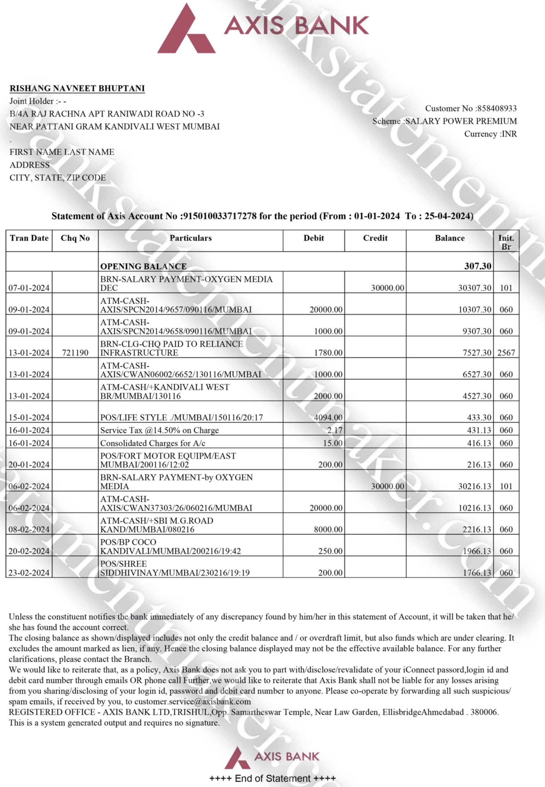 We work with graphic designers and financial professionals to ensure each file reflects the style and structure of actual AXIS statements. It’s not autogenerated – it’s manually crafted for accuracy and usability.