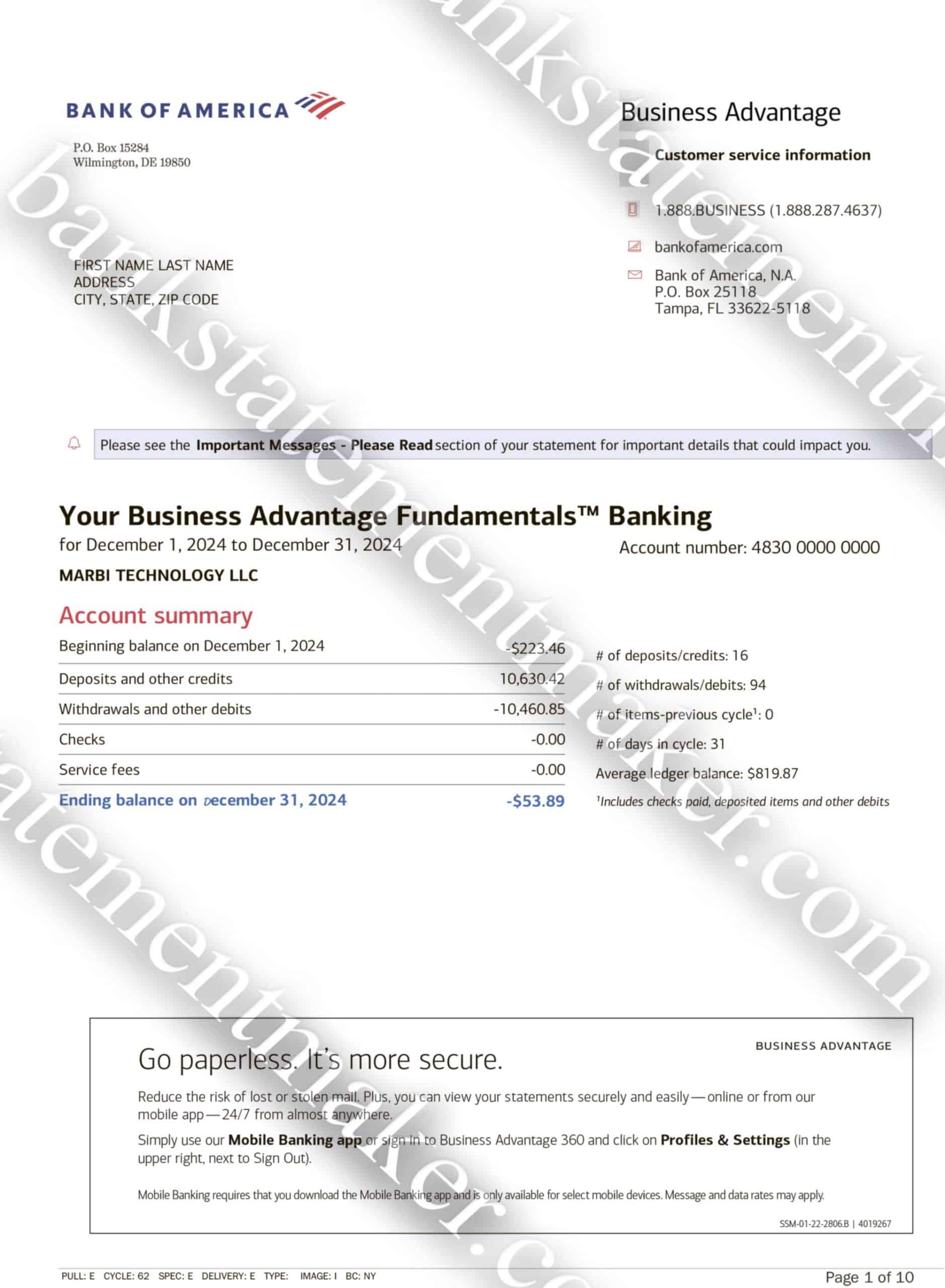Looking for a highly realistic, editable Bank of America statement template that mirrors real-world formatting? Whether you’re working on a digital project, organizing financial history, or need a clean layout for training or simulation — this customizable PDF file is designed for personal and professional use.