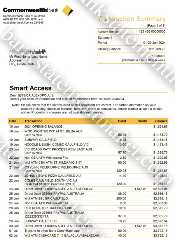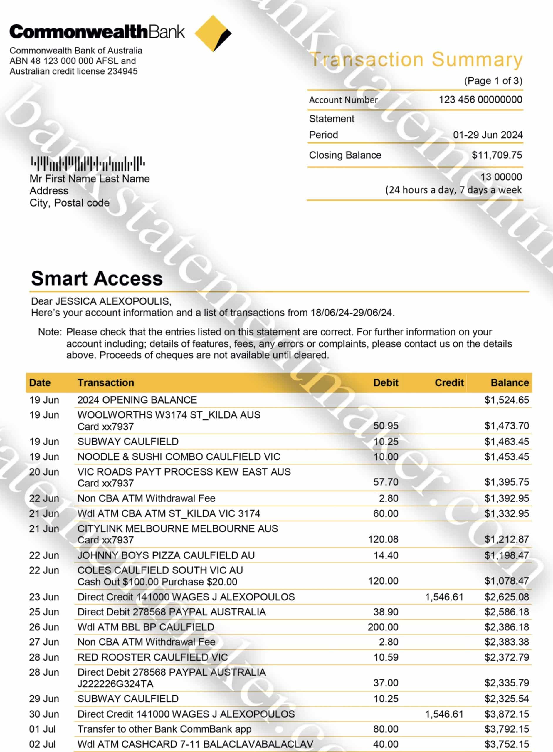 • ✔️ Looks just like a real Commonwealth Bank statement